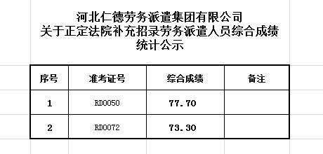 关于正定法院补充招录劳务派遣人员综合成绩统计公示
